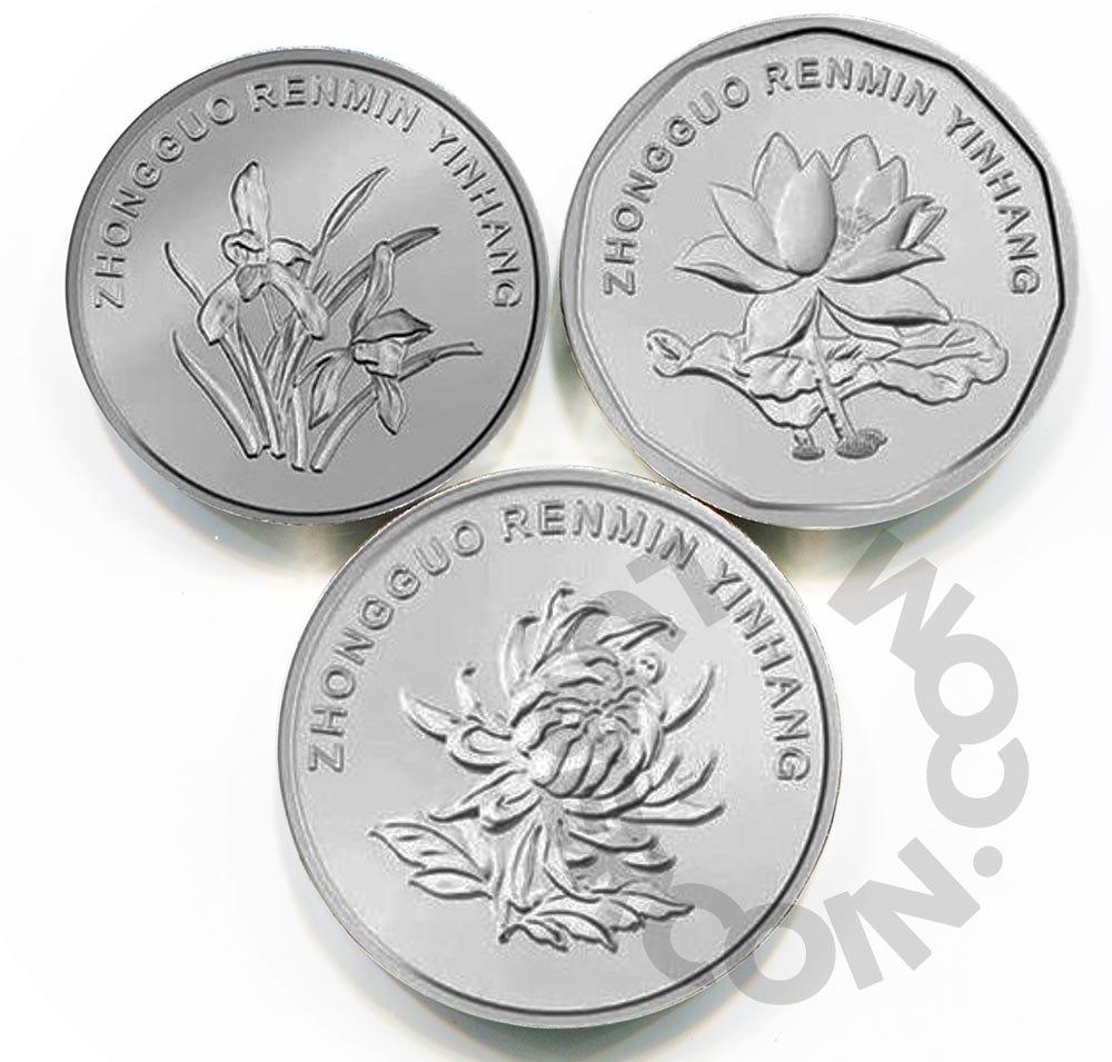 Китай набор монет 1, 5 цзяо, 1 юань 2019 (3 монеты) UNC