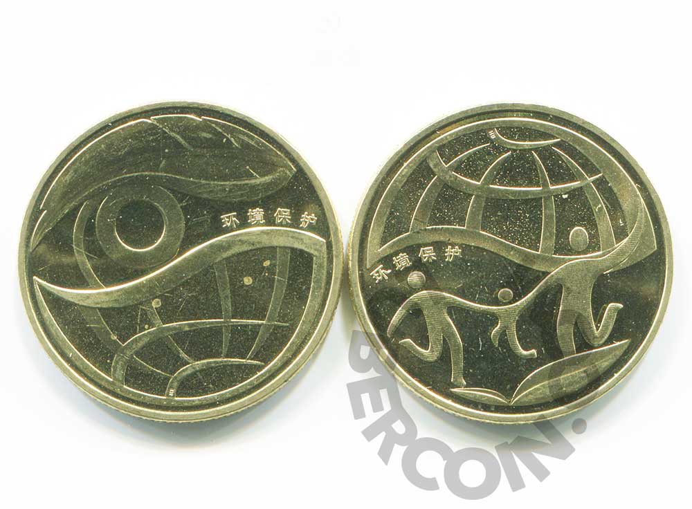 Китай набор монет 1 юань 2009-2010 Сохранение окружающей среды (2 монеты) UNC