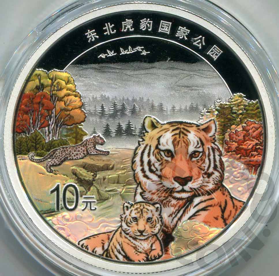 Китай 10 юаней 2024 Национальные парки. Тигр и Леопард PROOF