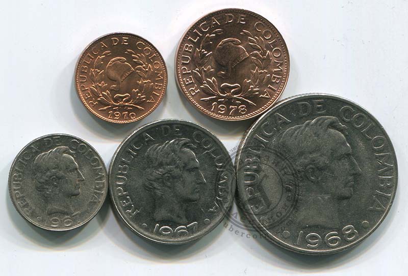 Колумбия набор монет 1, 5, 10, 20, 50 сентаво (5 монет) UNC