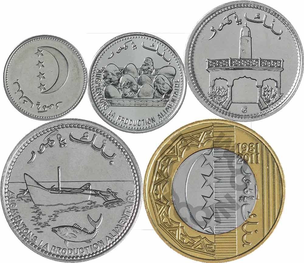 Коморы набор 10, 25, 50 100, 250 франков (5 монет) UNC