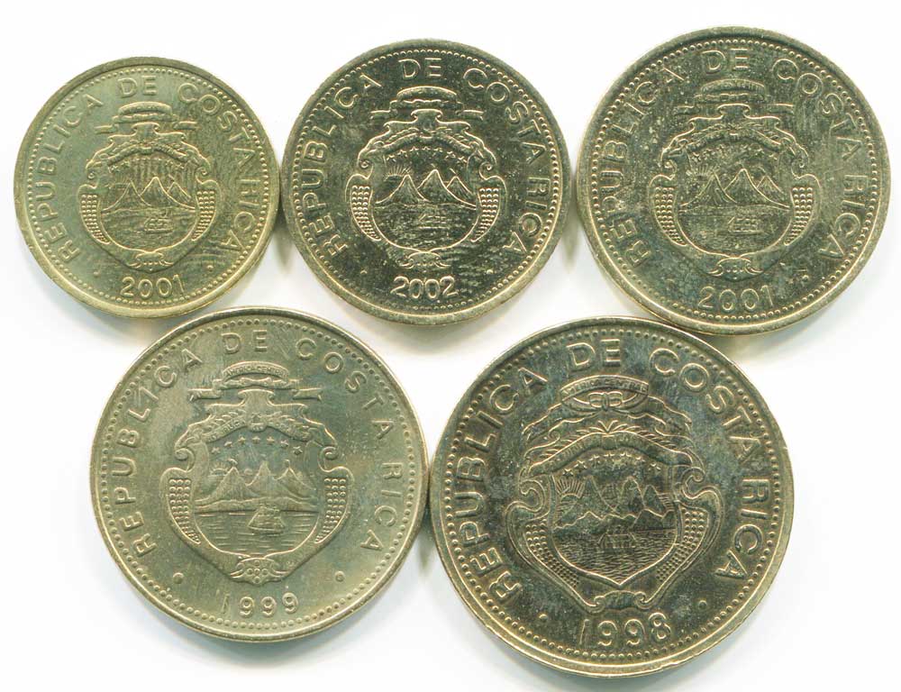 Коста-Рика набор монет 5, 10, 25, 50, 100 колонов (5 монет)