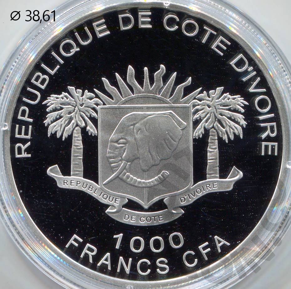 Кот-д'Ивуар 1000 франков 2010 Парусник «Королевское Солнце» PROOF (Патина)