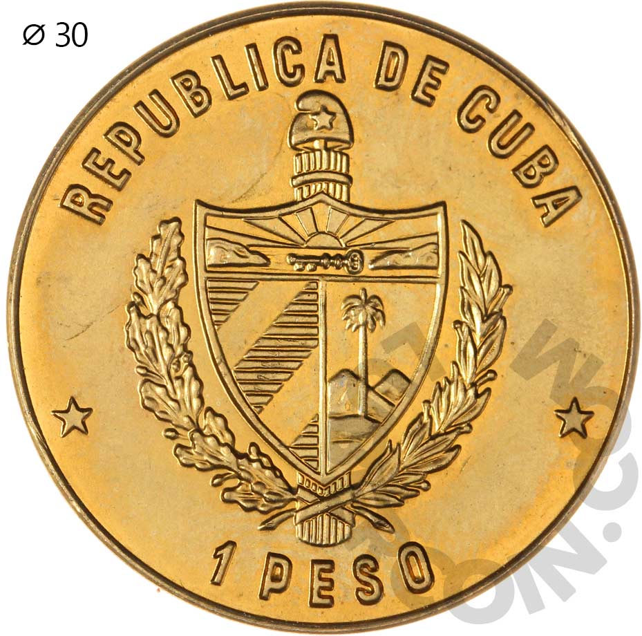 Куба 1 песо 1984 Парусник «Сантисима-Тринидад». Жёлтая UNC (Патина)