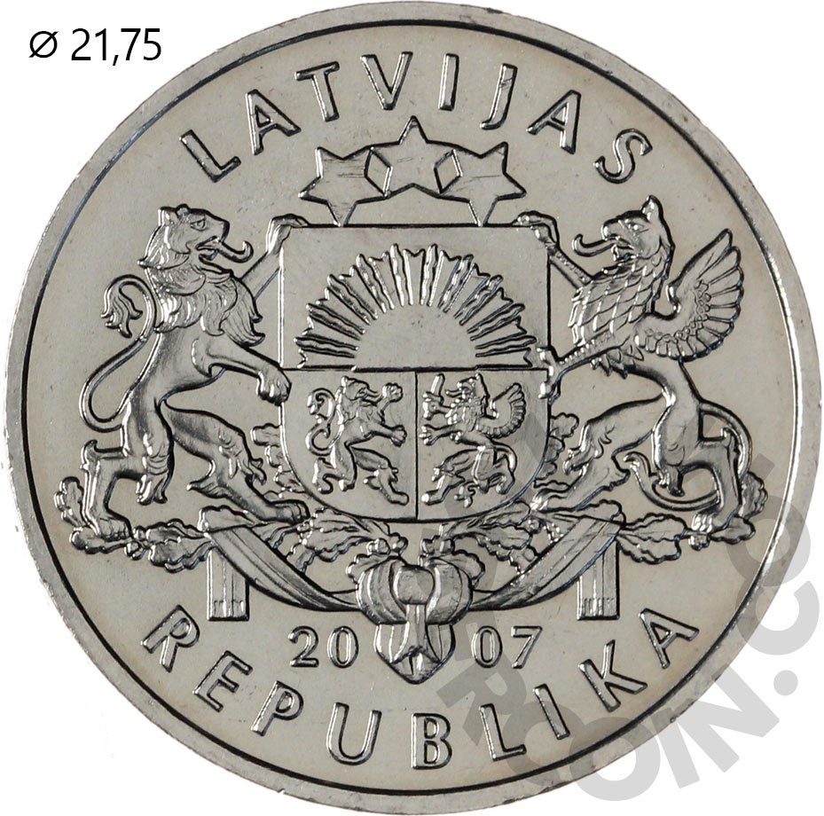 Латвия 1 лат 2007 Стилизованная сова / Застежка UNC