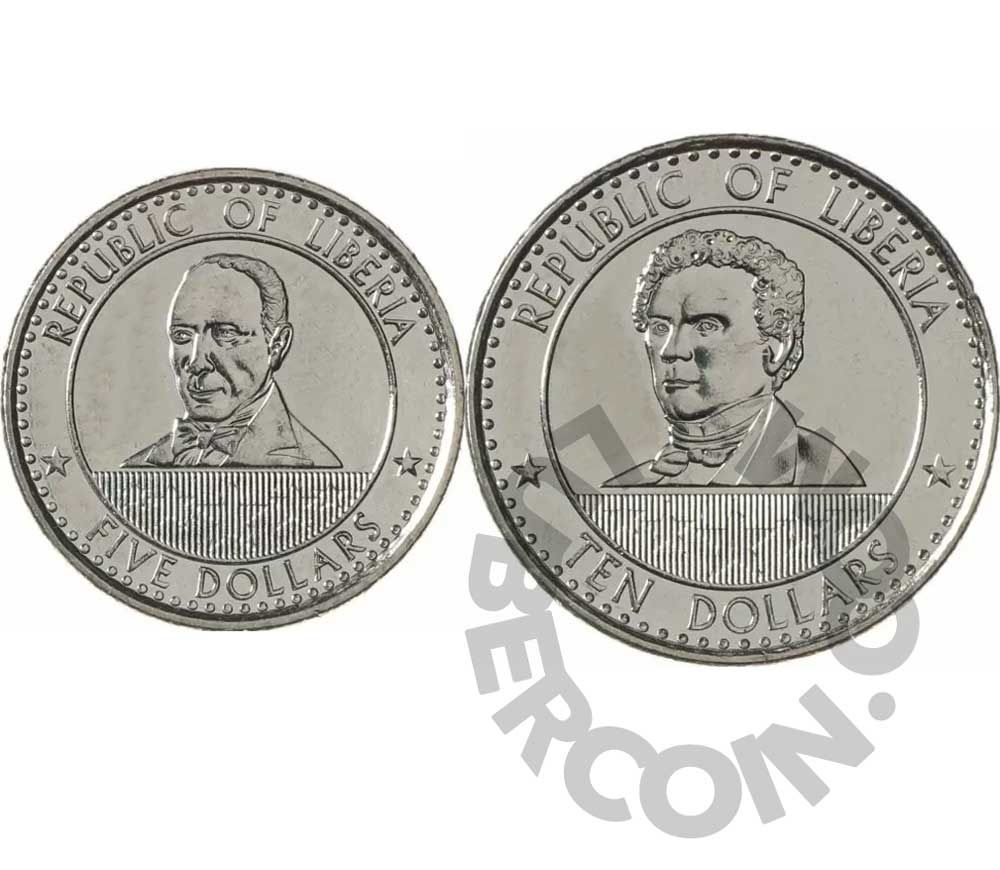 Либерия 5 и 10 долларов 2022 Эдвард Джеймс Рой и Джозеф Дженкинс Робертс (2 монеты) UNC