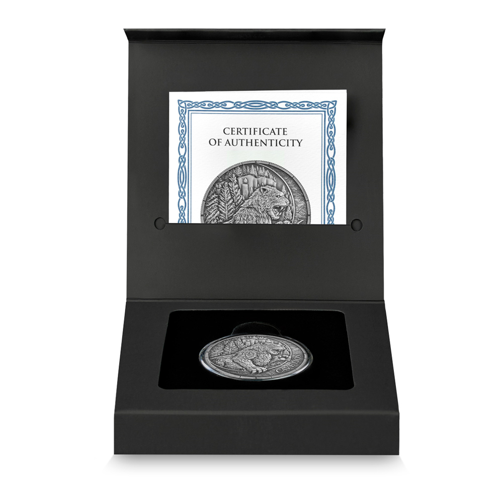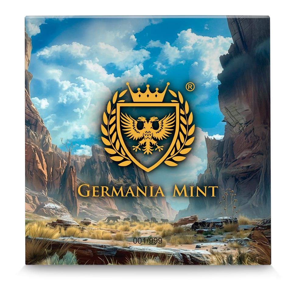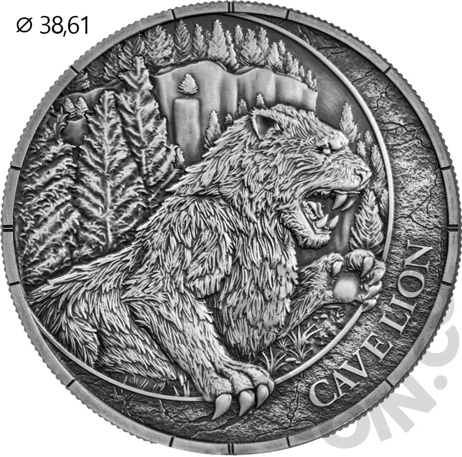 Либерия 20 долларов 2026 Мегафауна — Пещерный лев (Цветная (UV) монета в оригинальной упаковке) UNC