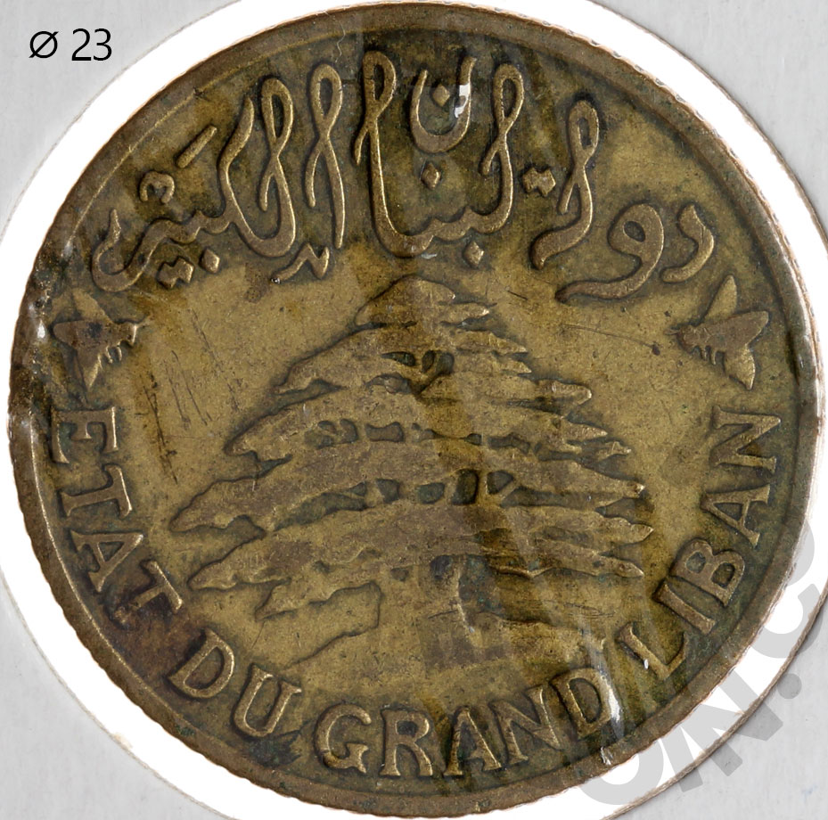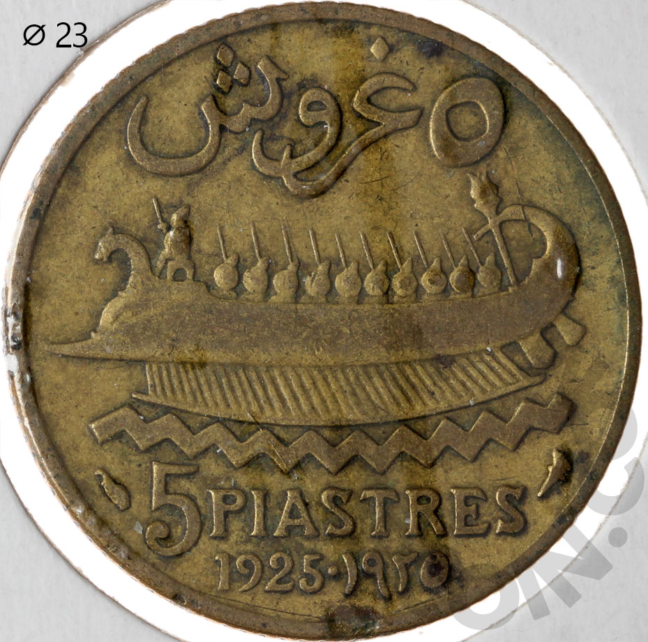 Ливан 5 пиастров 1925 «Факел» справа от номинала (00046472)