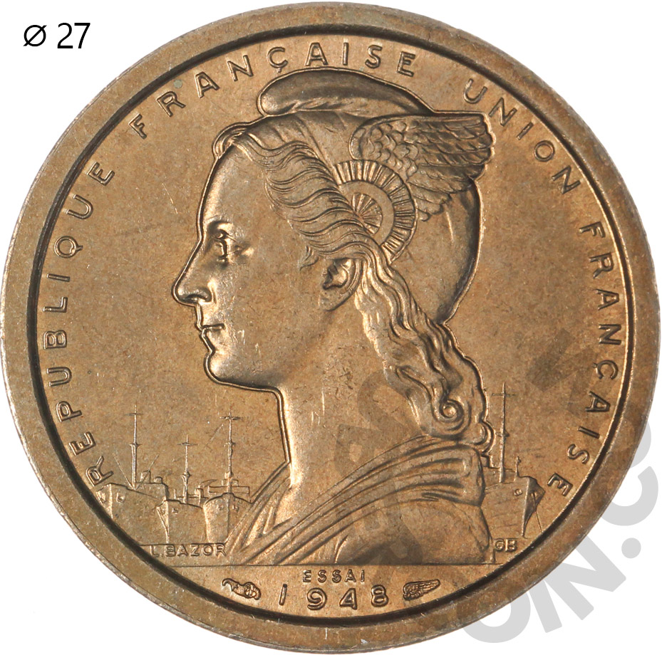 Мадагаскар 2 франка 1948 ESSAI / Проба (00044606)