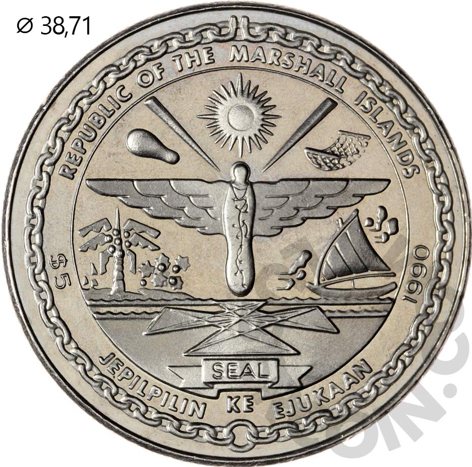 Маршалловы Острова 5 долларов 1990 Героям Битвы за Британию UNC (Патина)