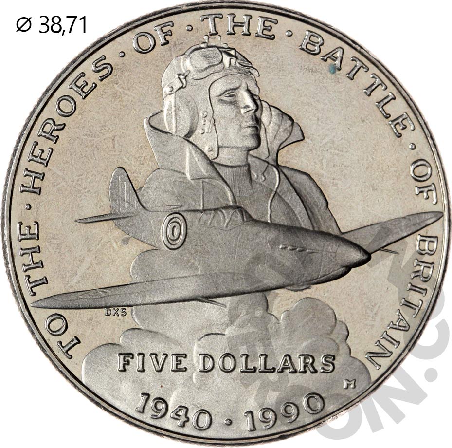 Маршалловы Острова 5 долларов 1990 Героям Битвы за Британию UNC (Патина)