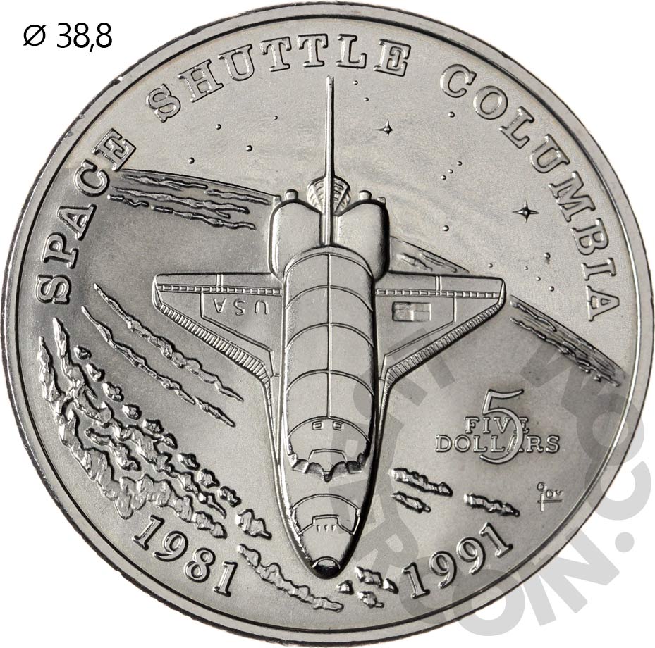 Маршалловы Острова 5 долларов 1991 Шаттл Колумбия UNC (Патина)
