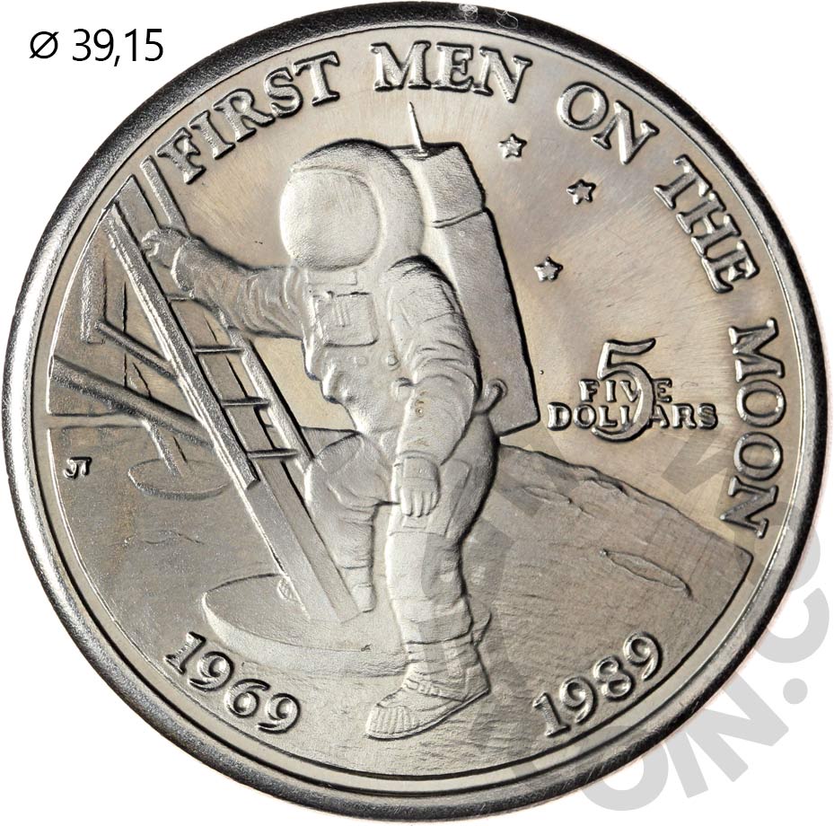 Маршалловы Острова 5 долларов 1989 Первый человек на Луне. 20 лет UNC (Патина)