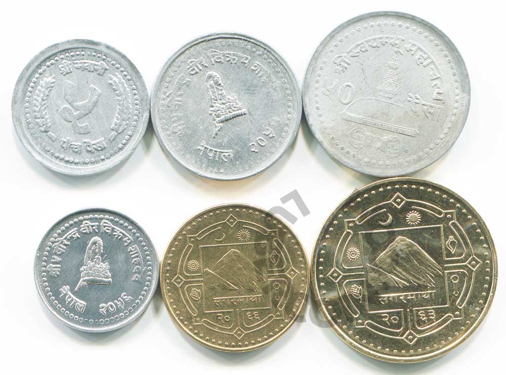 Непал набор монет 5, 10, 25, 50 пайс, 1, 2 рупии (6 монет) UNC