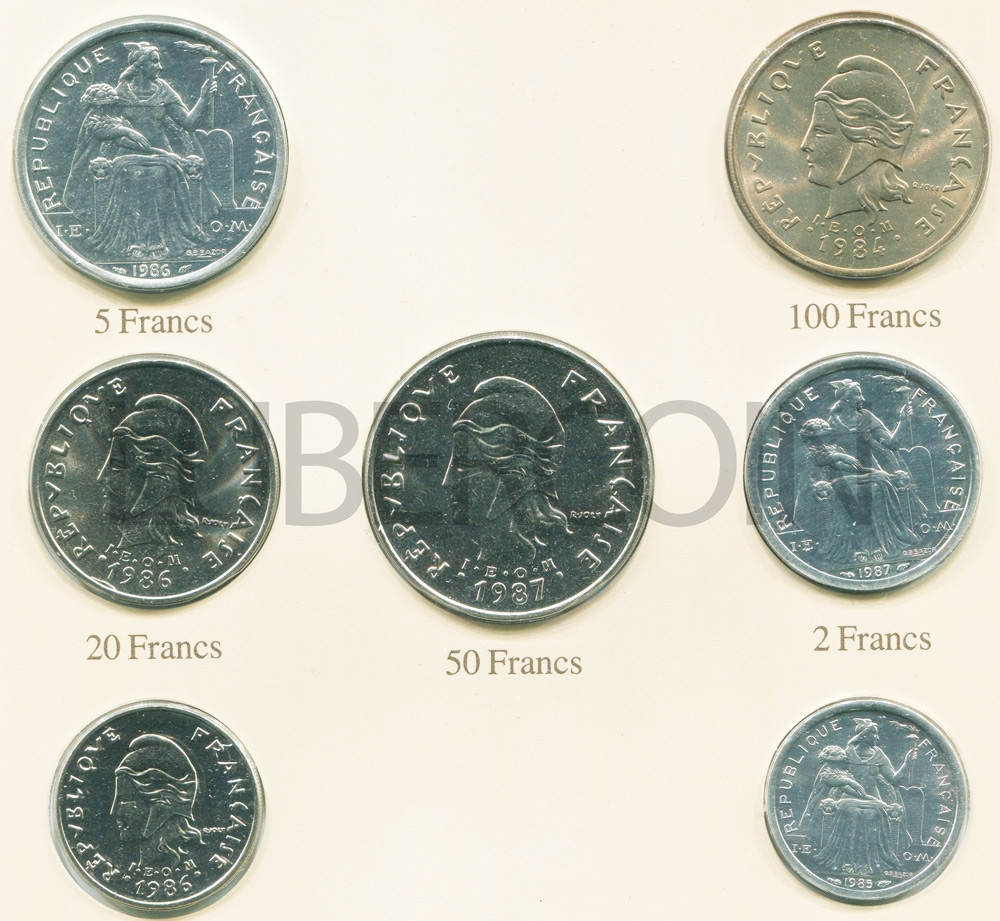 Новая Каледония набор монет 1, 2, 5, 10, 20, 50, 100 франков 1984-1987 (7 монет) UNC