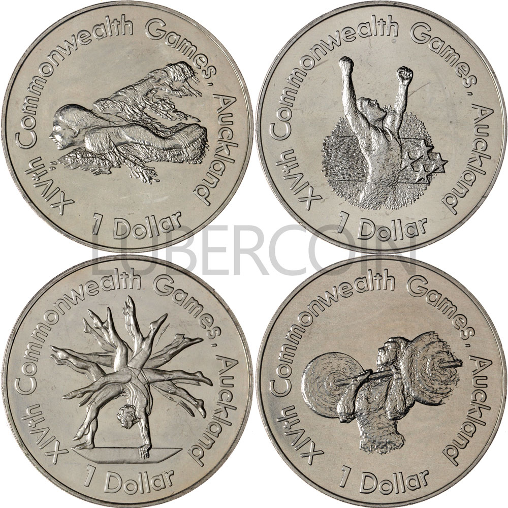 Новая Зеландия набор монет 1 доллар 1989 XIV Игры Содружества (4 монеты) UNC (Патина)