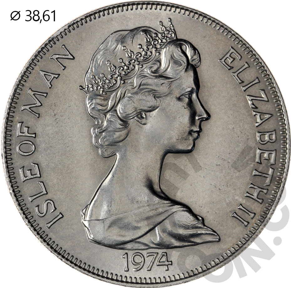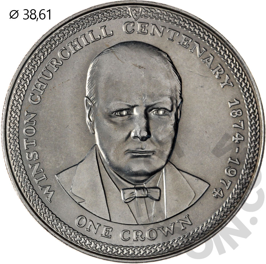 Остров Мэн 1 крона 1974 Уинстон Черчилль. 100 лет со дня рождения UNC (Патина)