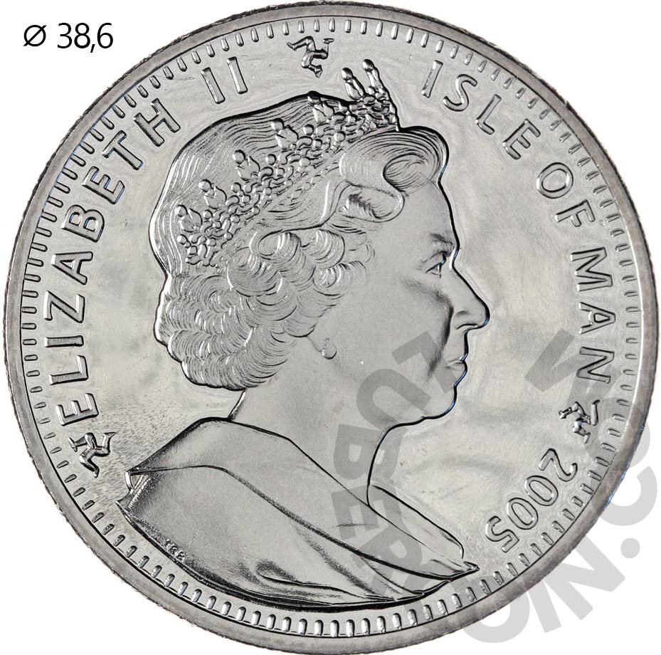 Остров Мэн 1 крона 2005 Трафальгарское сражение. Похороны Горацио Нельсона UNC (Патина)