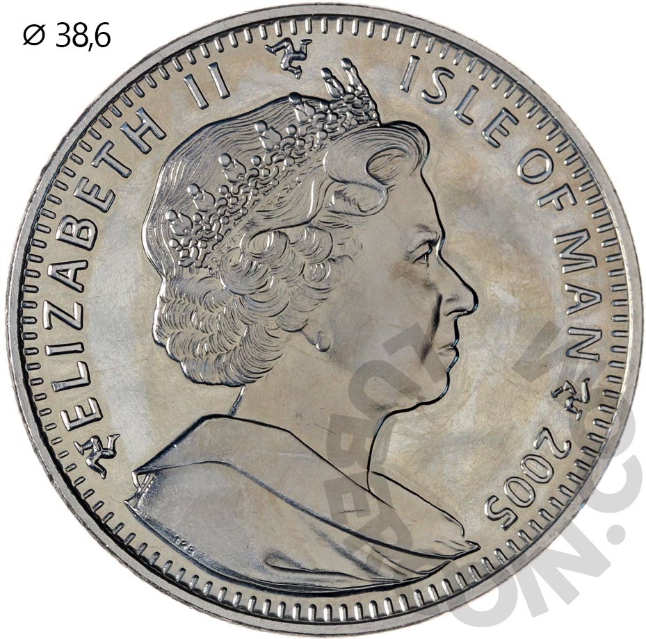Остров Мэн 1 крона 2005 Трафальгарское сражение. Битва у мыса Сан-Висенте UNC (Патина)