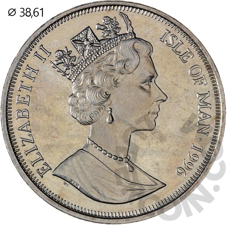 Остров Мэн 1 крона 1996 Мореплаватели — Сэр Фрэнсис Дрейк UNC (Патина)