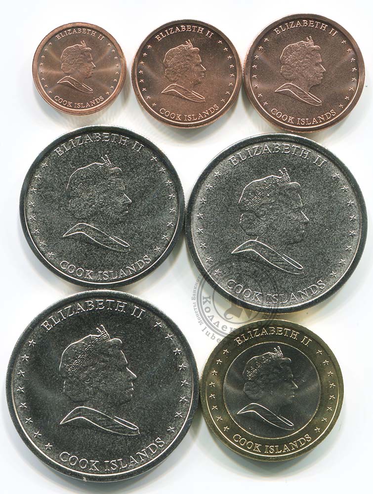 Острова Кука набор монет 1, 2, 5, 10, 20, 50 центов, 1 доллар 2010 (7 монет) UNC