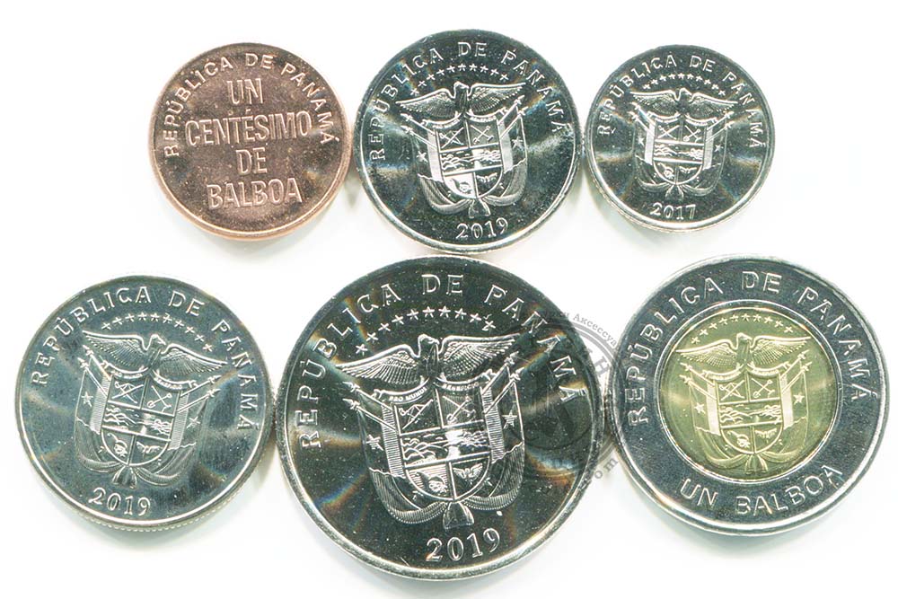 Панама набор монет 1, 5 сентесимо, 1/10, 1/4, 1/2, 1 бальбоа 2017-2019 (6 монет) UNC
