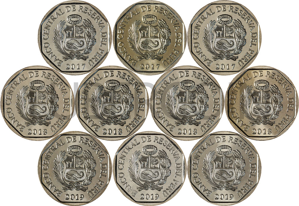 Перу набор монет 1 соль 2017-2019 Природа Перу (10 монет) UNC