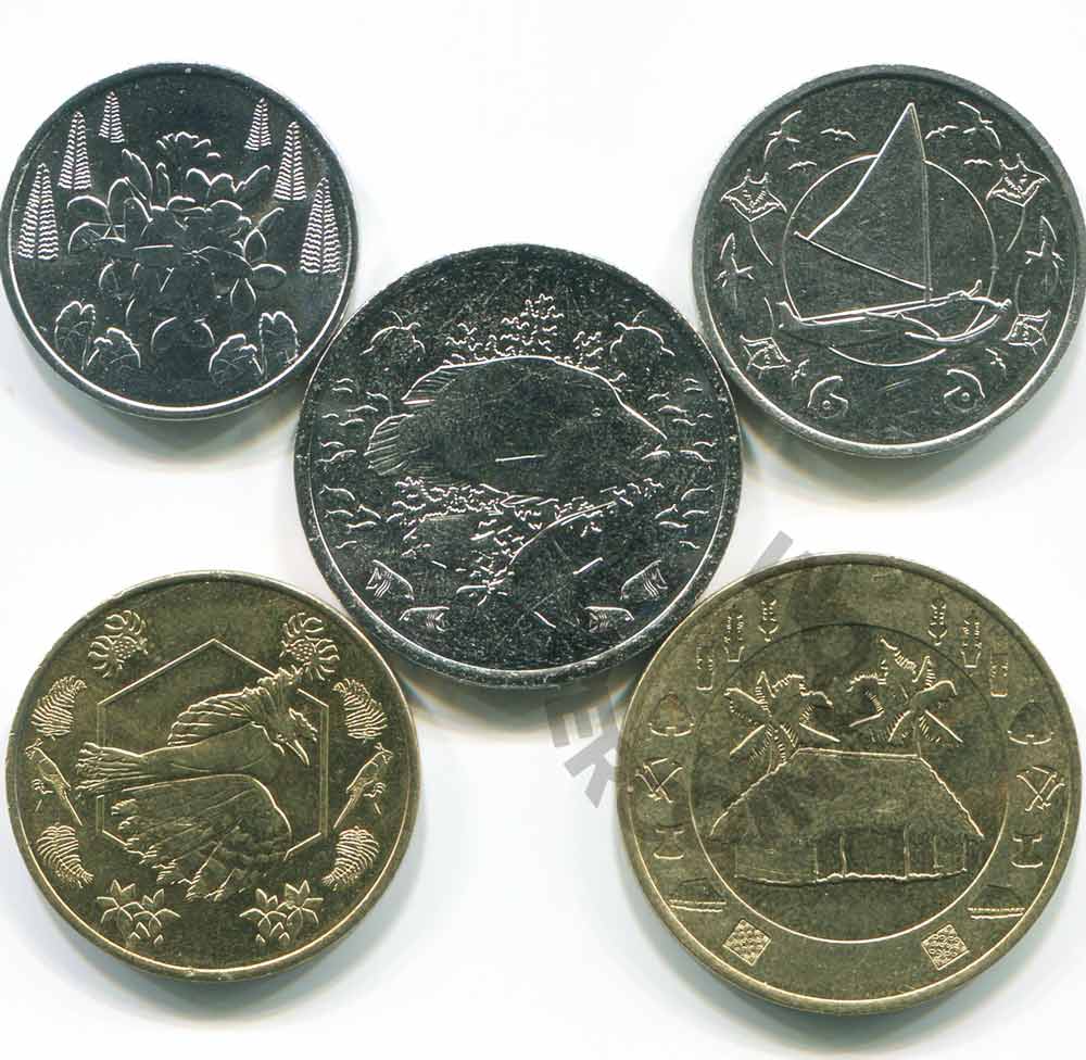 Полинезия набор монет 5, 10, 20, 50, 100 французских тихоокеанских франков (5 монет)