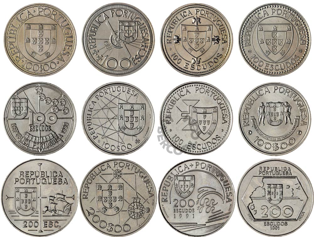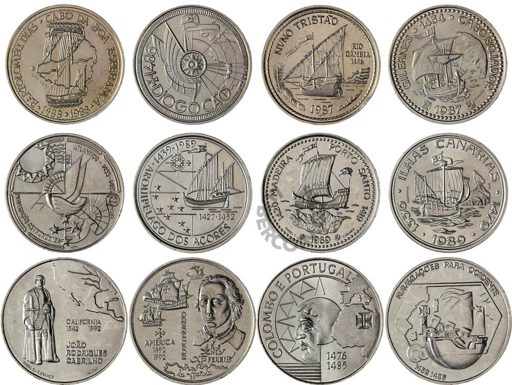 Португалия набор монет 100 и 200 эскудо 1986 - 1992 Золотой век открытий (12 монет) UNC