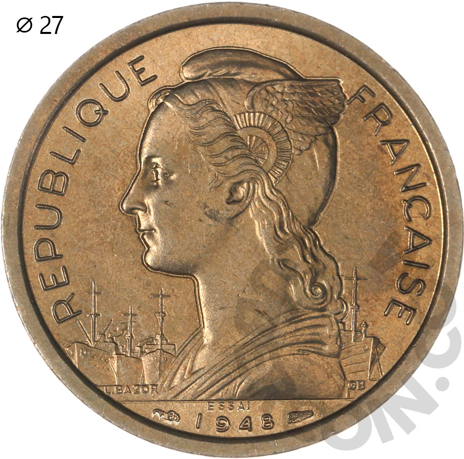 Реюньон 2 франка 1948 ESSAI / Проба (00044601)