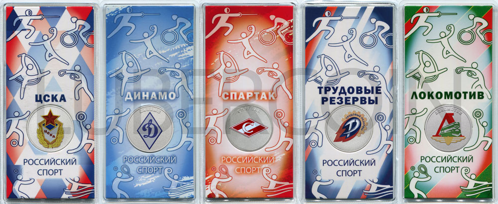 25 рублей 2025 Российский спорт. ЦСКА, Динамо, Спартак, Трудовые резервы, Локомотив (5 монет) UNC