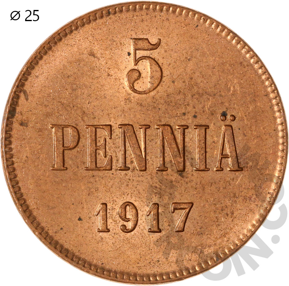 Россия для Финляндии 5 пенни 1917 Орел без короны (00032214)