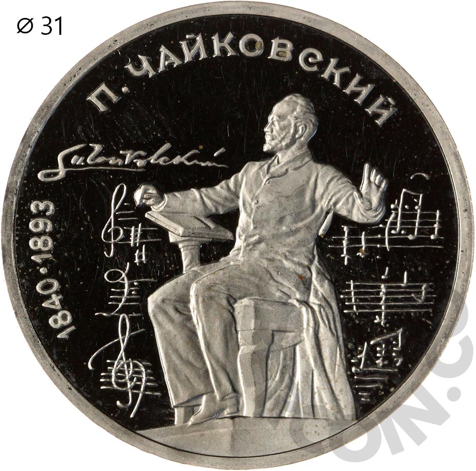 1 рубль 1990 Петр Чайковский. 150 лет со дня рождения UNC