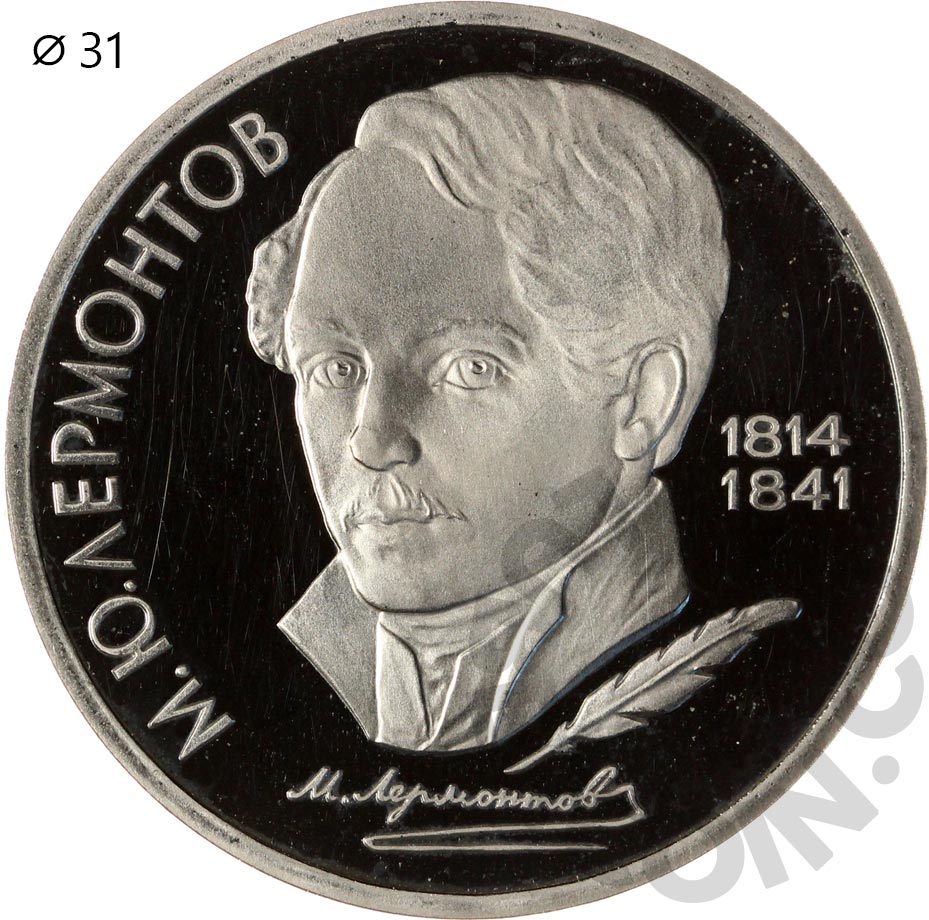 1 рубль 1989 Михаил Лермонтов. 175 лет со дня рождения UNC