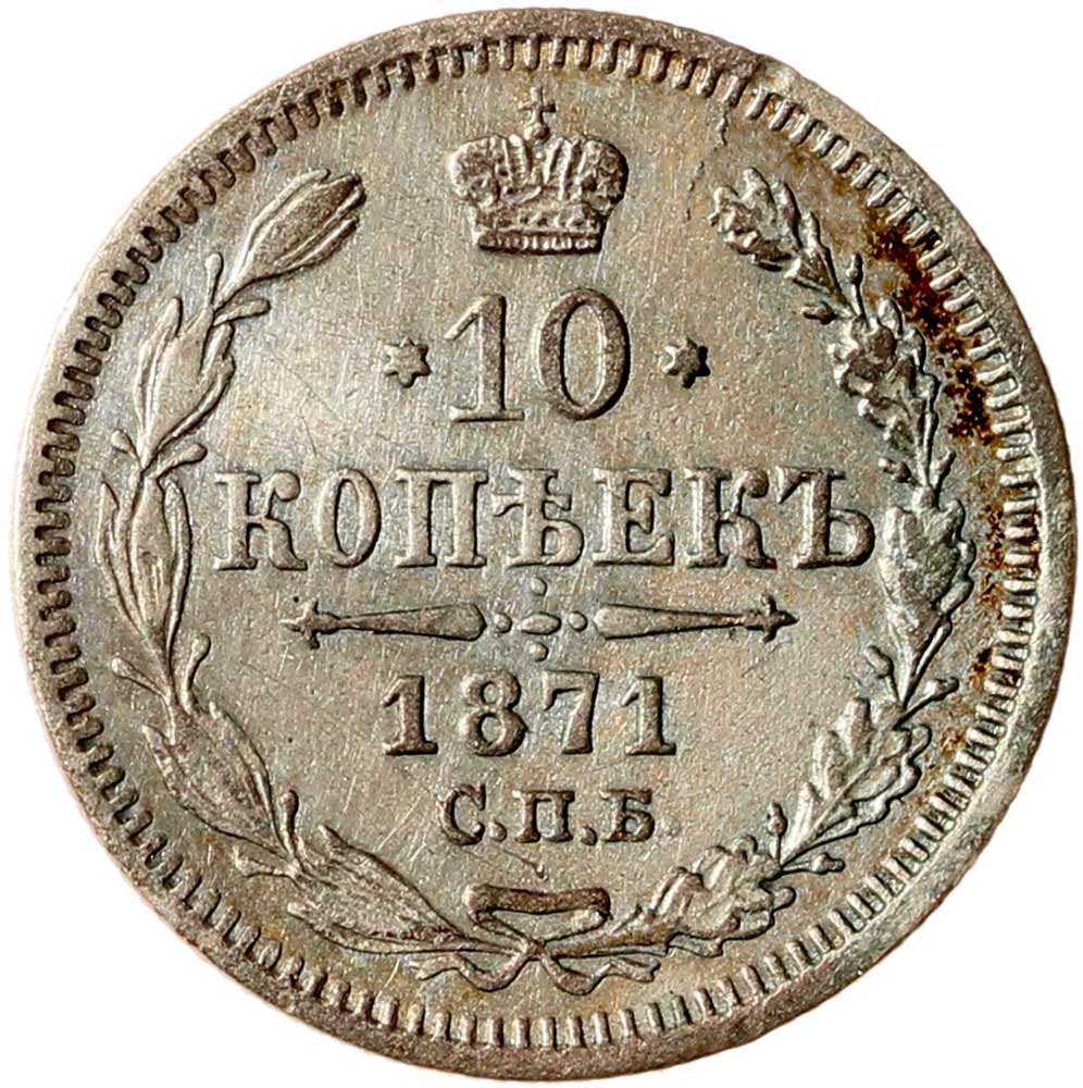 Российская Империя 10 копеек 1871 С.П.Б. HI (00041390)