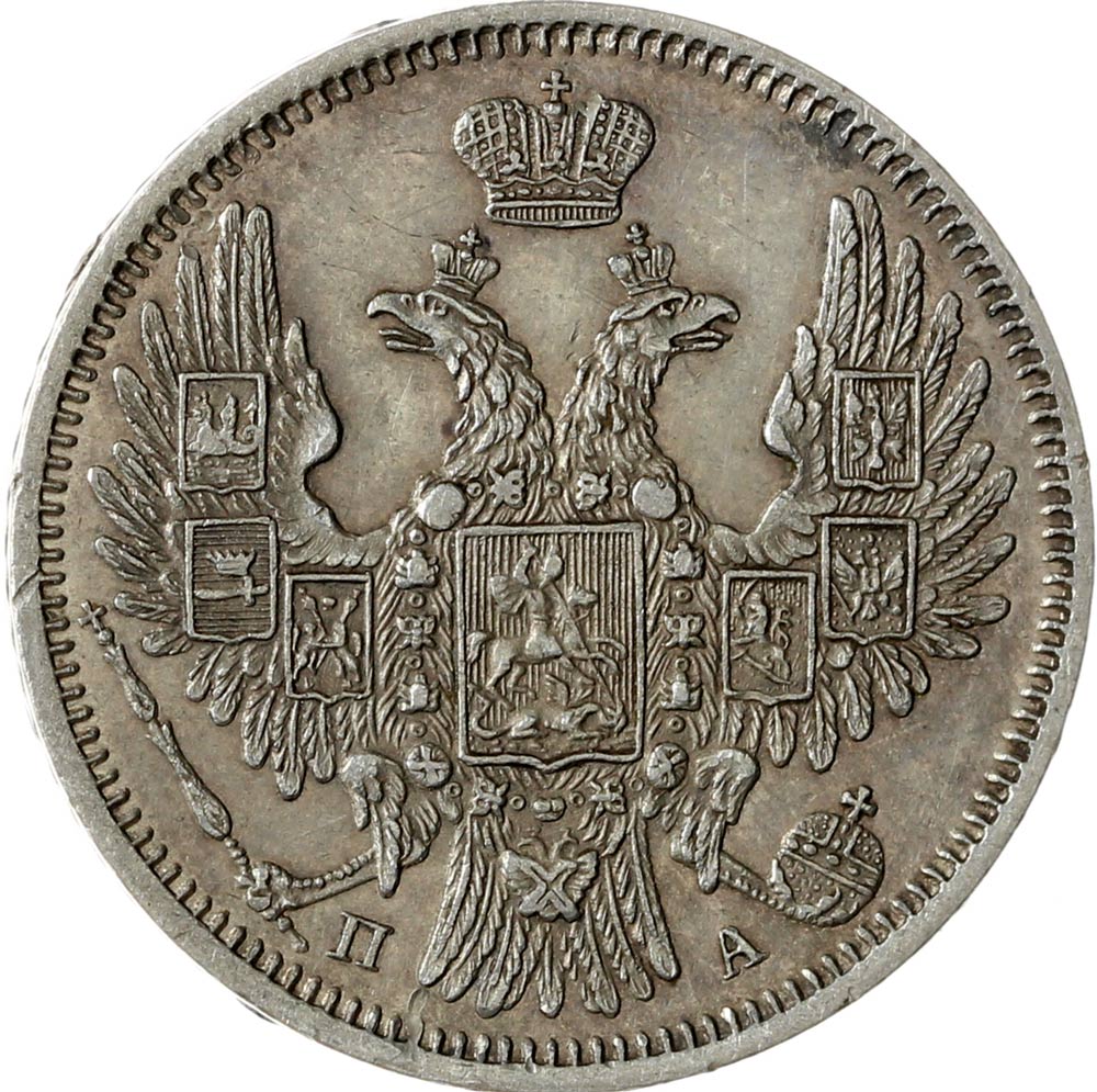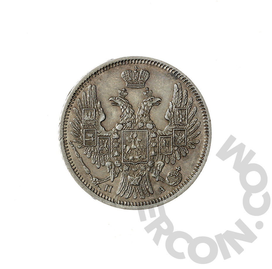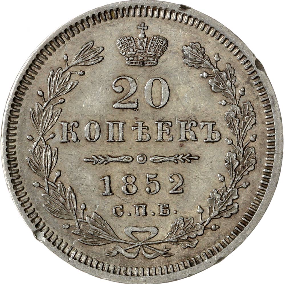 Российская Империя 20 копеек 1852 С.П.Б. ПА (00041043)