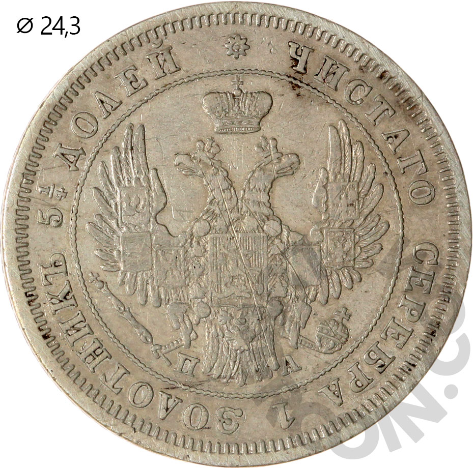 Российская Империя 25 копеек 1849 С.П.Б. ПА Орел 1850-1855 (5,1гр.) (00046936)