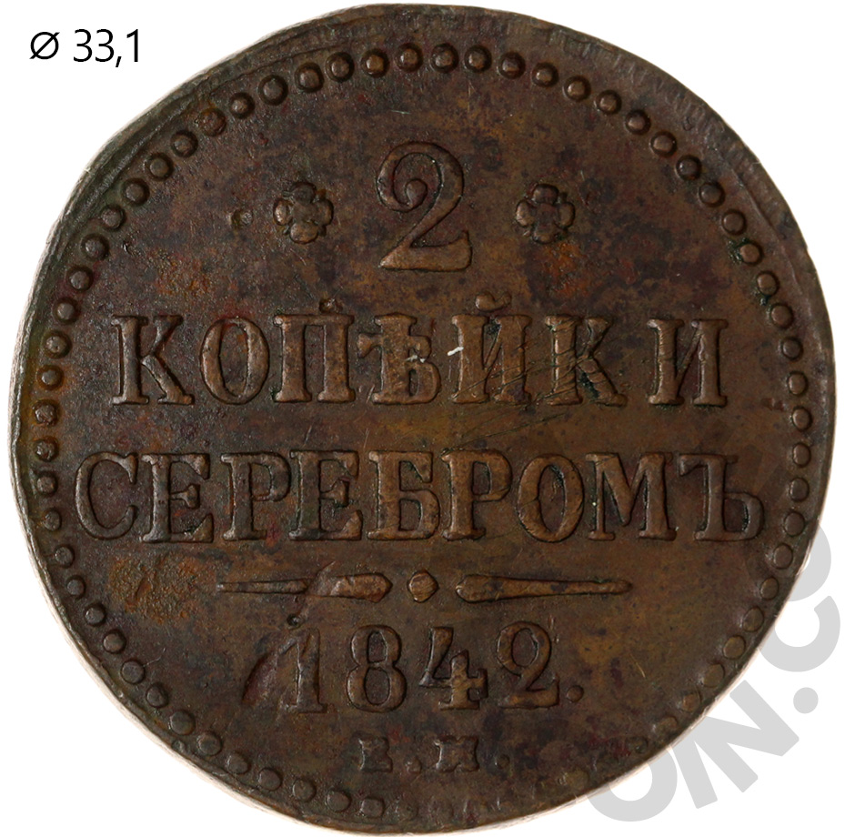 Российская Империя 2 копейки серебром 1842 Е.М. (00046993)