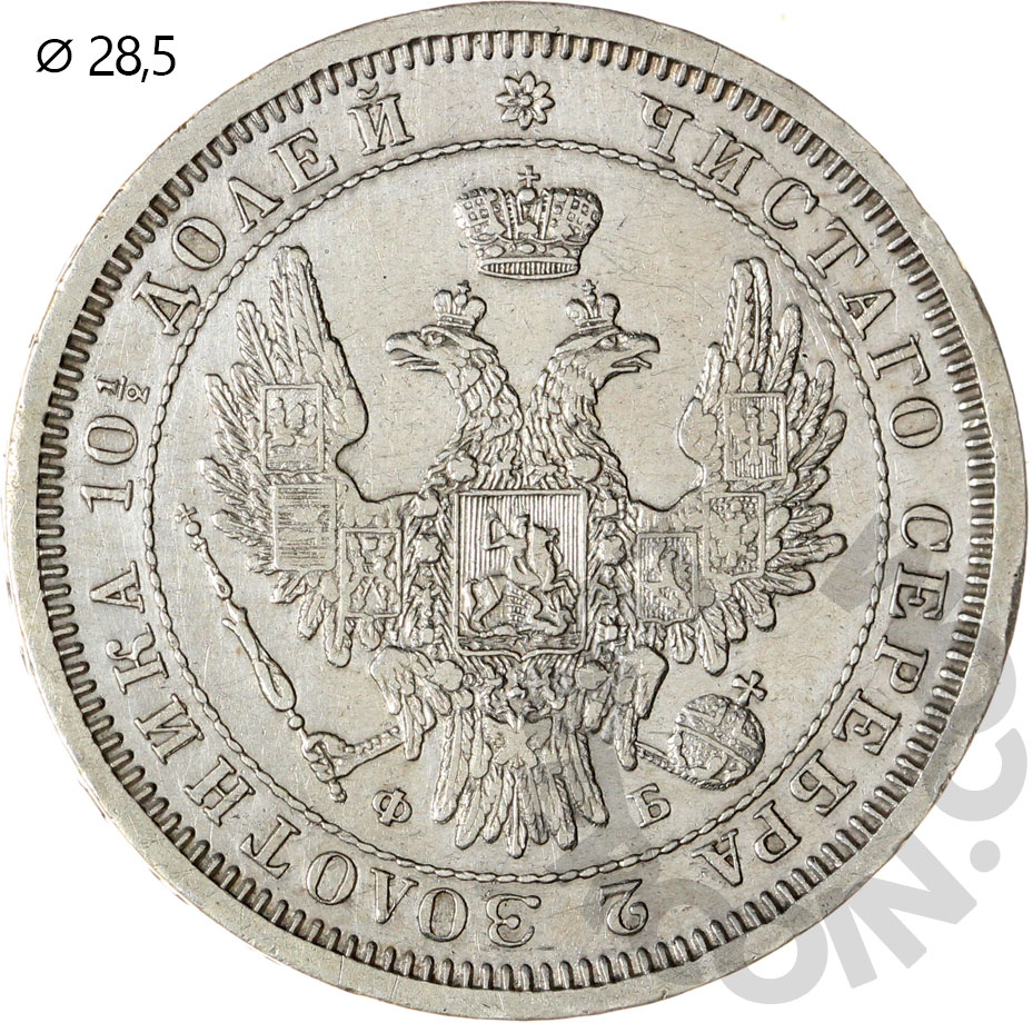 Российская Империя полтина (50 копеек) 1857 СПБ ФБ (10,29гр.) (00046932)