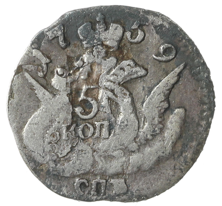 Российская Империя 5 копеек 1759 СПБ Орёл в облаках (00041047)