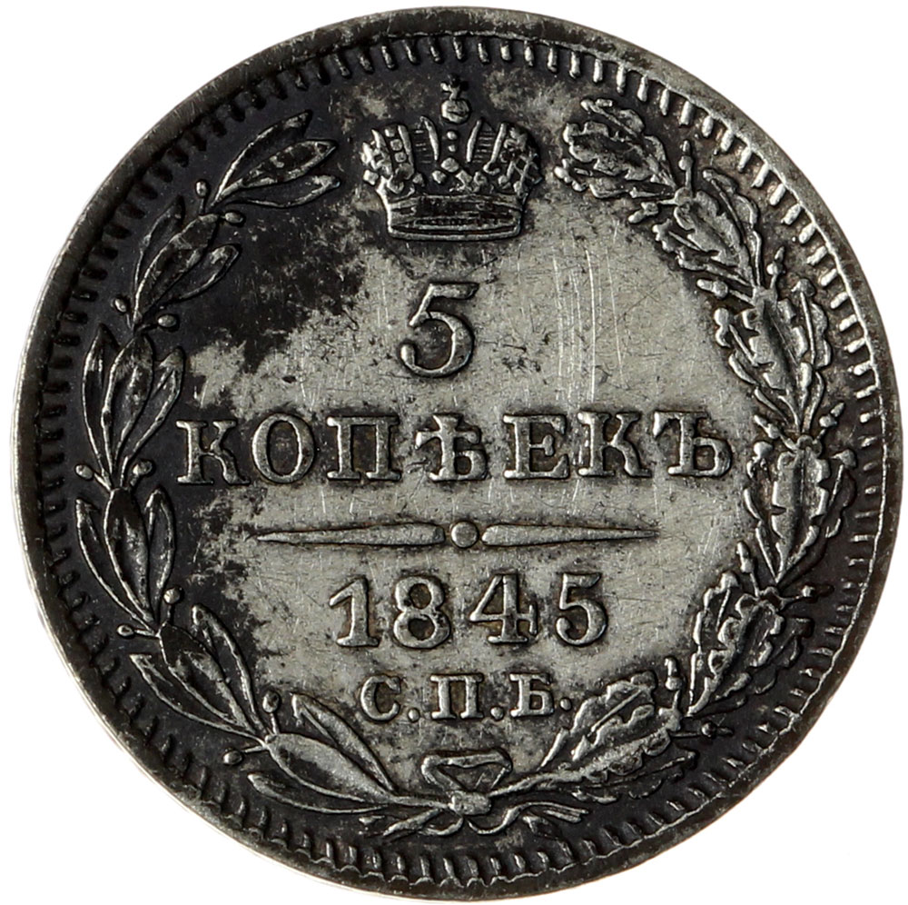 Российская Империя 5 копеек 1845 С.П.Б. КБ (00042008)