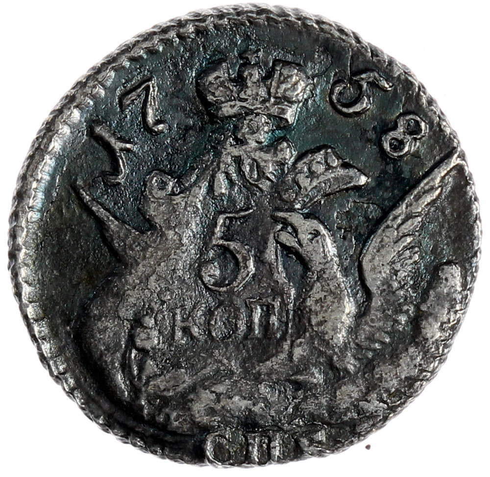 Российская Империя 5 копеек 1758 С.П.Б. Орёл в облаках (0,88гр.) (00042189)
