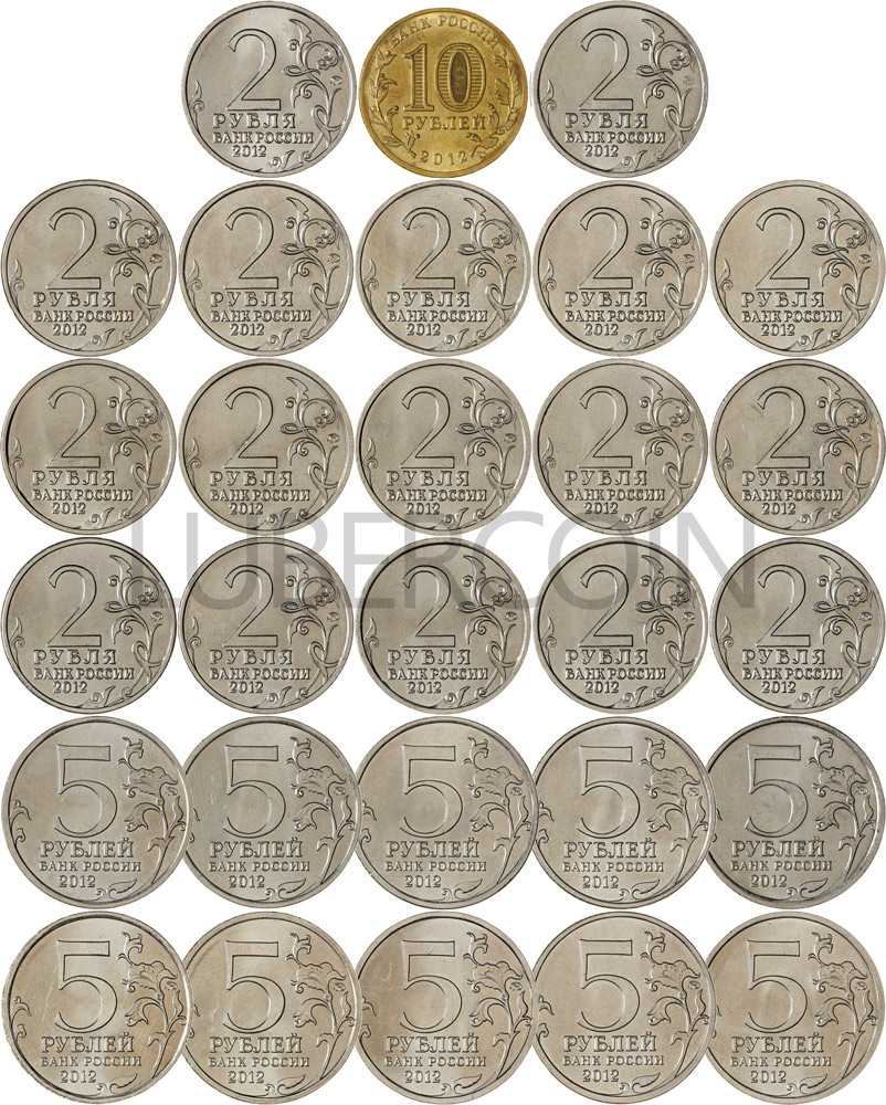 2, 5, 10 рублей 2012 Победа в Отечественной войне 1812 года. 200 лет со дня события (28 монет) UNC