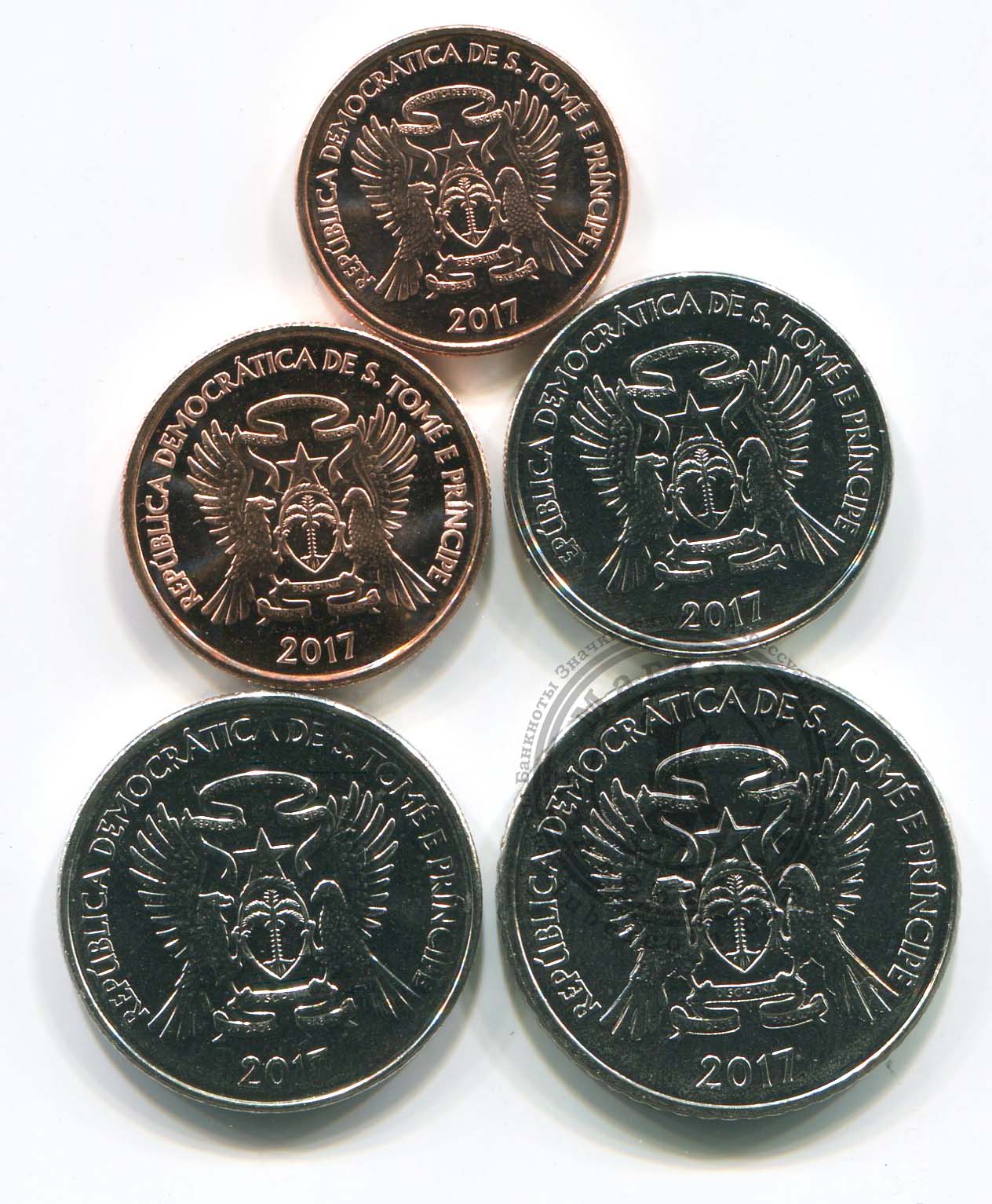 Это полный набор монет Сан-Томе и Принсипи для обращения 2017 года. Это также полный набор всех современных монет, находящихся в обращении.