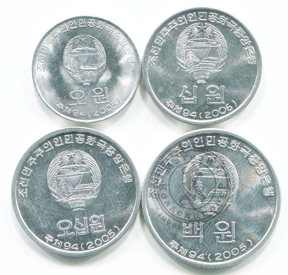 Северная Корея набор монет 5, 10, 50, 100 вон 2005 (4 монеты) UNC