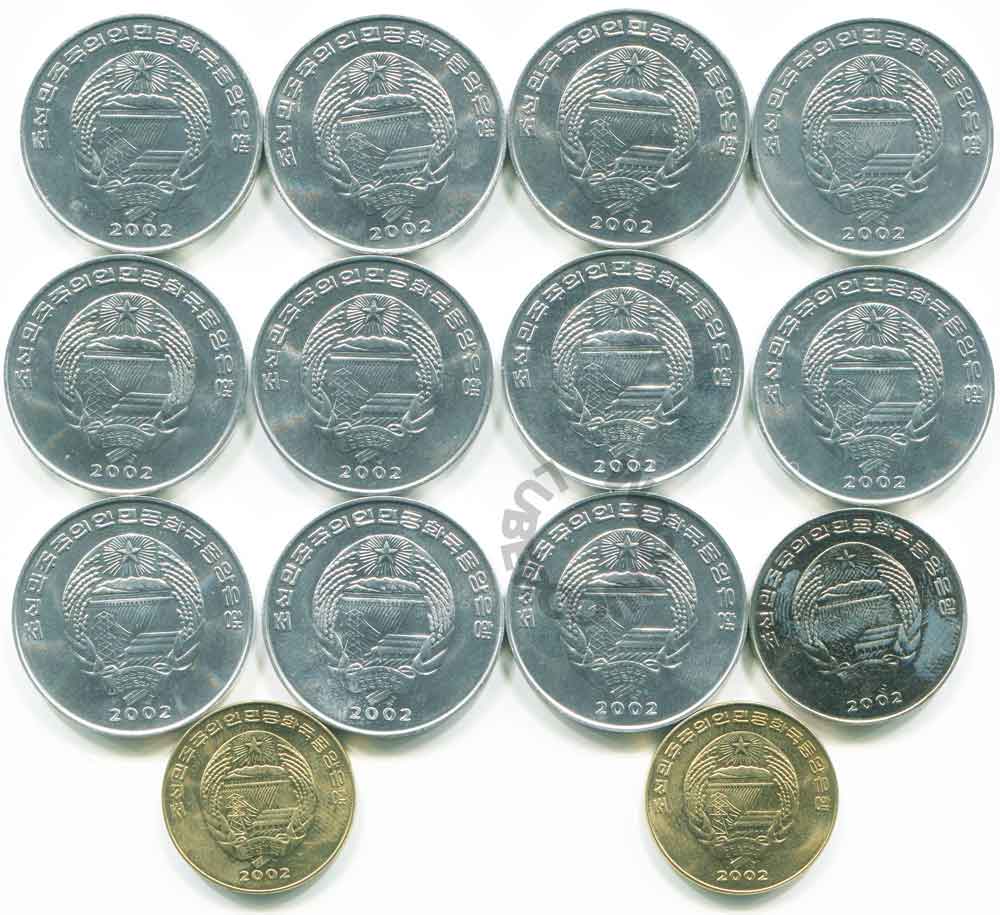 Северная Корея набор монет ½, 1, 2 чона 2002 (14 монет) UNC