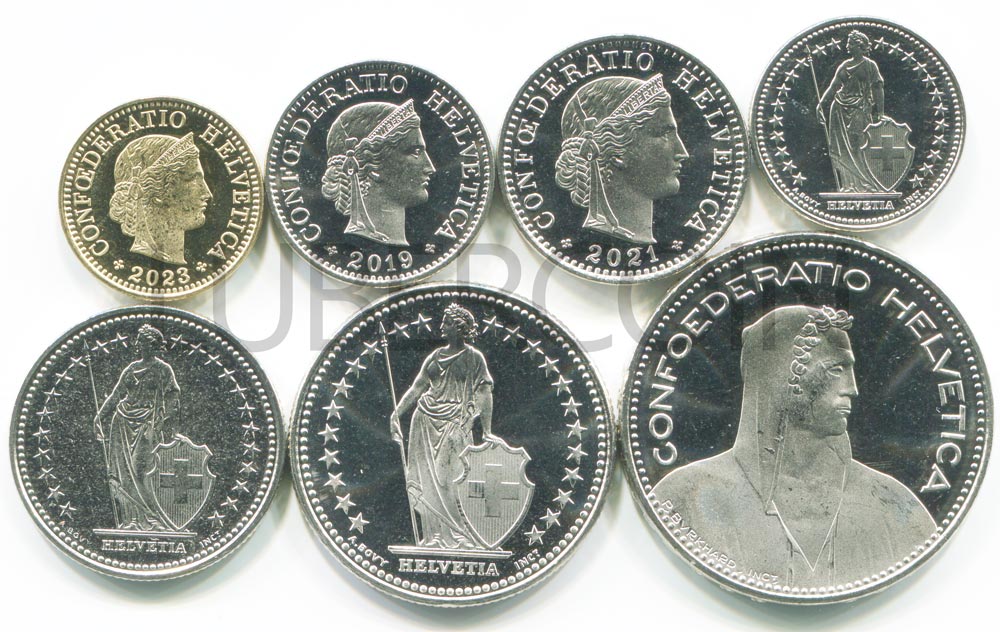 Швейцария набор монет 5, 10, 20 раппенов, 1/2, 1, 2, 5 франков (7 монет) UNC