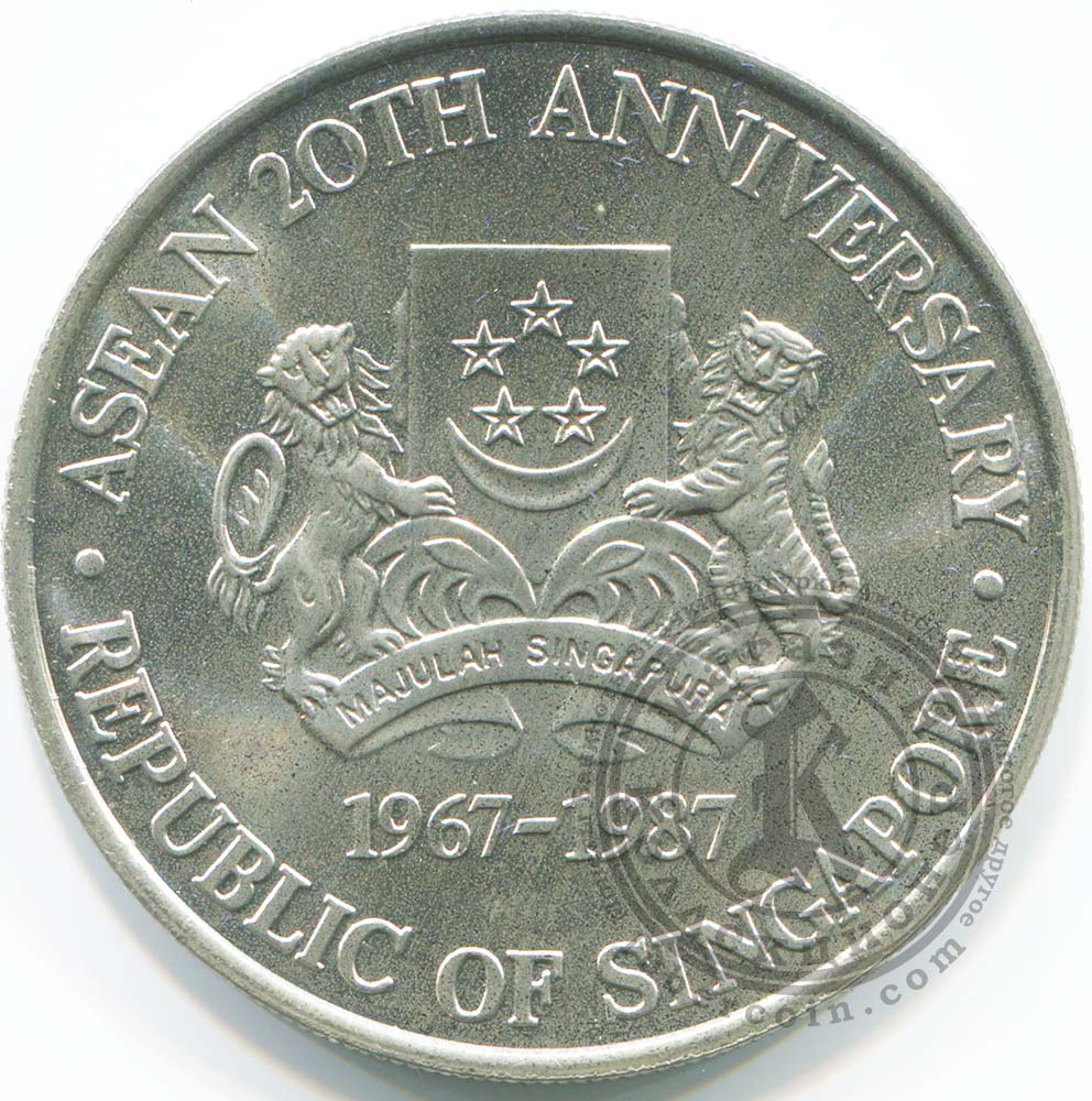 Сингапур 10 долларов 1987 АСЕАН. 20 лет со дня основания (Монета в коробке) UNC