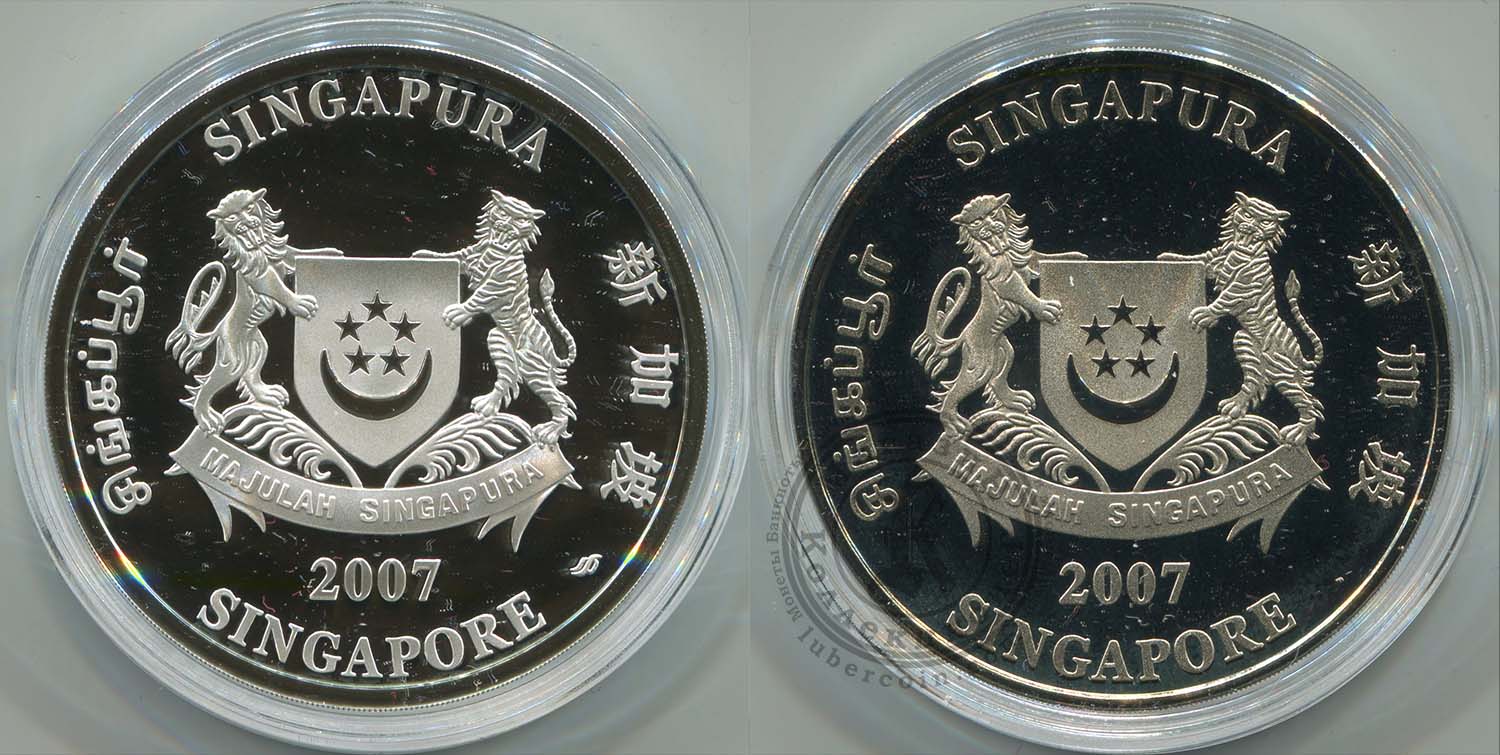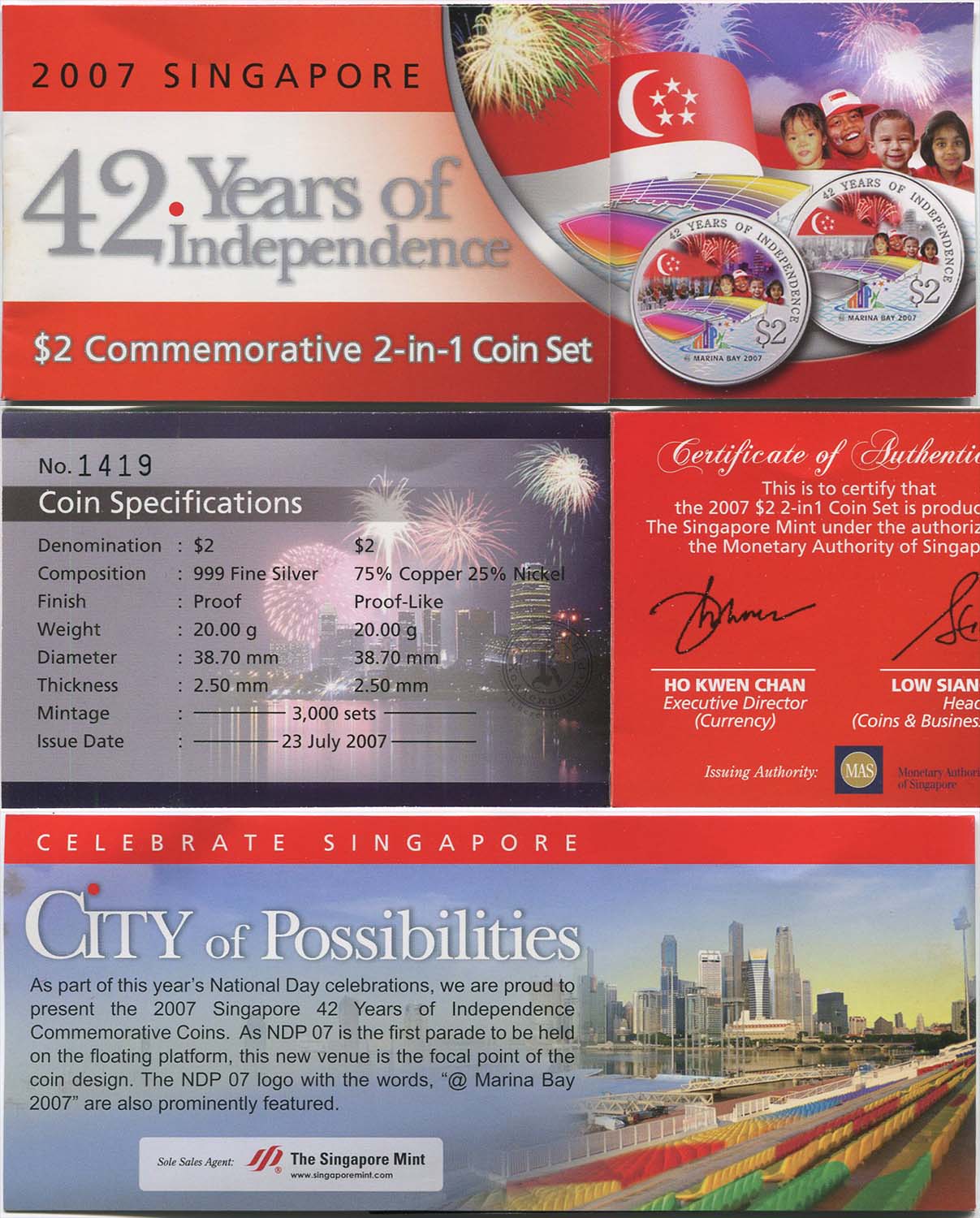 Сингапур набор монет 2 доллара 2007 Независимость. 42 года со дня обретения (2 монеты Ag + Cu-Ni)