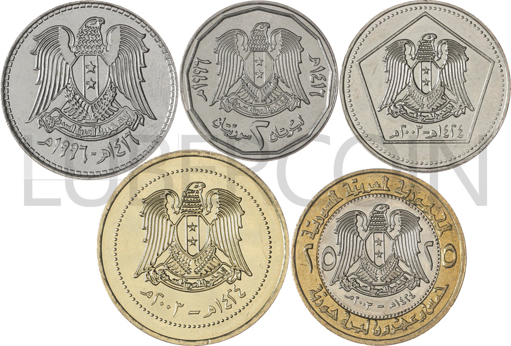 Сирия набор монет 1, 2, 5, 10, 25 фунтов (5 монет) UNC